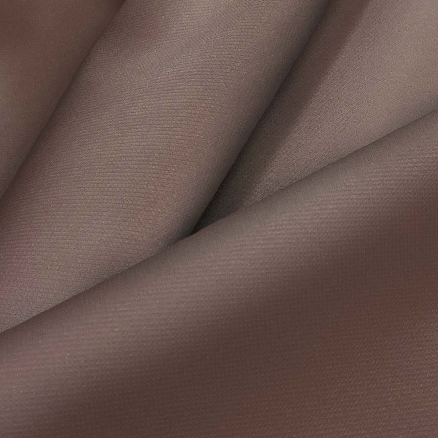 O tecido base é caracterizado por ser impermeável, o que o torna ideal para vestuário que protege da água e do vento, especialmente no inverno. Também tem uma textura fina e um toque agradável, o que o torna um tecido confortável e respirável para usar em roupas esportivas e de moda. Quanto à cor impressa, o marrom escuro confere-lhe uma seriedade e sobriedade que o tornam ideal para roupas mais formais.