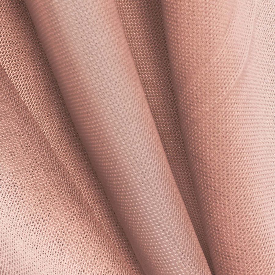O tecido base é um Tule Elástico - Oslo, composto por 94% Poliéster e 6% Elastano, com uma gramatura de 80 gr/m2 e uma largura de 147 cm. A cor sólida estampada é um Rosa Queimado com um CMYK de 10 47 39 1, que se assemelha a um tom terroso e quente. Esta cor secundária combina perfeitamente com tons bege, marrons e cinzas, acentuando assim um estilo natural e atemporal. É importante ressaltar que o tecido é estampado com a cor sólida em uma única face por impressão digital têxtil.