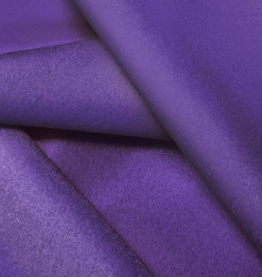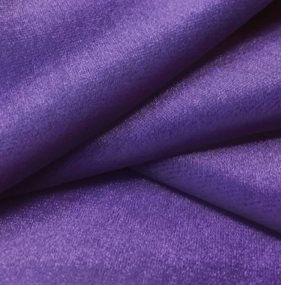 O tecido base, Veludo Retro - Paris, é de veludo com uma composição de 93% poliéster e 7% elastano. A cor lisa estampada é Roxo Íris, com um CMYK de 84 95 10 2. Esta cor violeta intensa combina muito bem com tons como branco, cinza e dourado.
