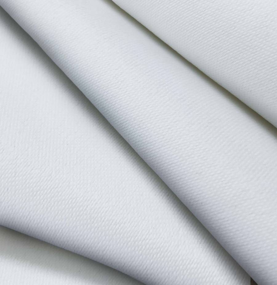 O tecido base é Lona Oscurante - White Out, um tecido técnico de poliéster com uma gramatura de 218 gr/m2 e uma largura de 160 cm. A cor lisa impressa é Azul Pastel, com uma combinação de tintas CMYK de 23 14 7 0. Esta cor transmite calma e serenidade, complementando-se especialmente com tons neutros e cores quentes.