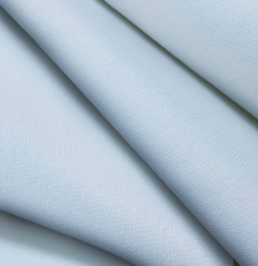A base de tecido da Lona Blackout - White Out é feita de tecido técnico de poliéster com uma gramatura de 218 gr/m2 e uma largura de 160 cm. A cor sólida impressa é Azul Cristal, com 40% de tinta ciano, 19% de tinta magenta, 7% de tinta amarela e 0% de tinta preta. Esta cor é caracterizada pelo seu tom azul claro e seu brilho cristalino, combinando especialmente bem com tons neutros como branco, cinza e bege.
