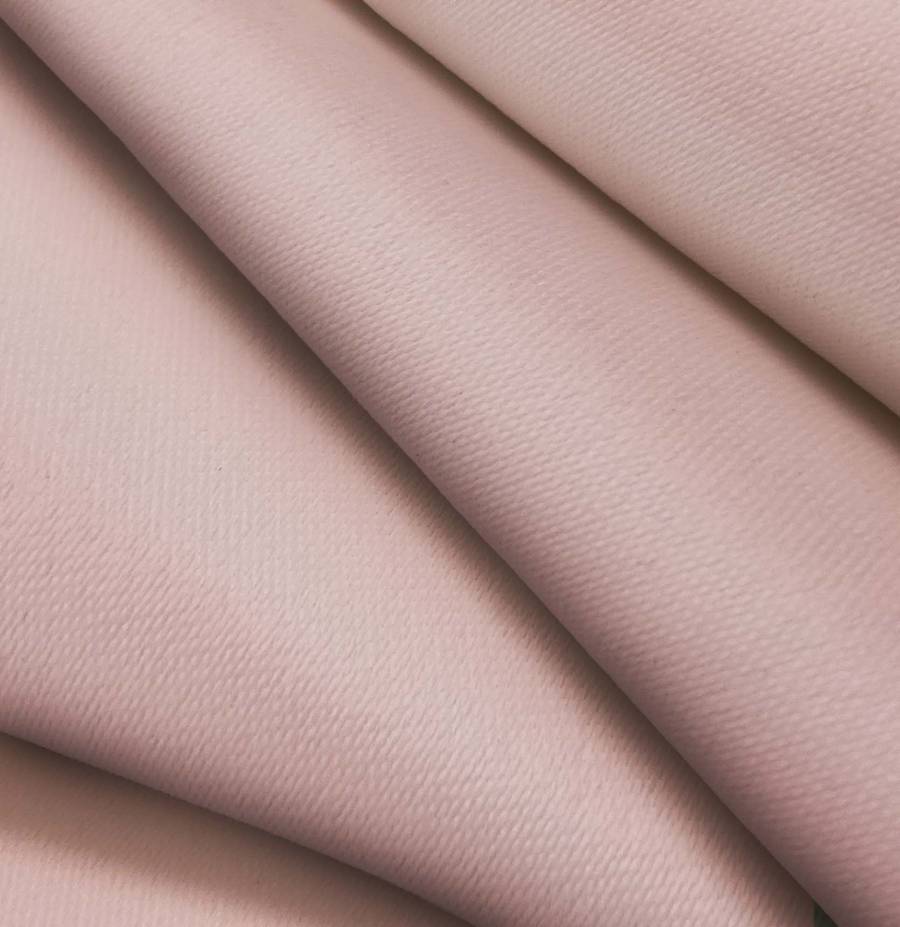 O tecido base é Lona Oscurante - White Out, de cor Rosa Mate com um CMYK de 26 44 35 11. Esta cor secundária é suave e quente, ideal para transmitir calma e delicadeza. Combina perfeitamente com cores neutras como branco, cinza e bege, assim como com tons pastel para criar uma atmosfera suave e acolhedora.