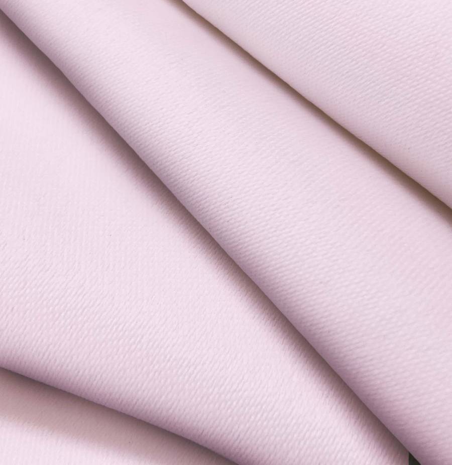 O tecido base é Lona Blackout - White Out, com uma cor lisa estampada em rosa clássico com CMYK de 0 28 0 0. Esta cor simboliza feminilidade, romance e doçura. Combina perfeitamente com tons neutros como branco, cinza e preto, bem como com cores metálicas como dourado.