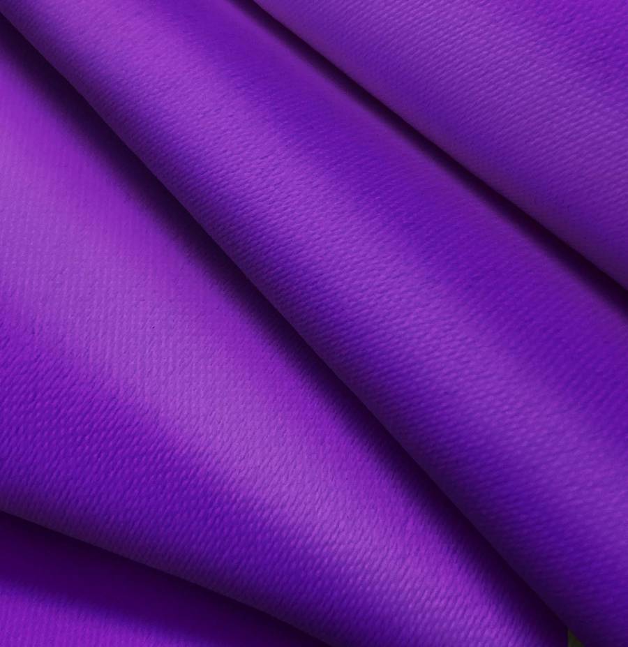 O tecido base é lona blackout White Out, um tecido técnico com composição 100% poliéster. A cor sólida estampada é um tom de roxo sólido, com CMYK de 80 95 0 0. Esta cor simboliza criatividade, espiritualidade e transformação. Combina perfeitamente com tons como branco, cinza e rosa.