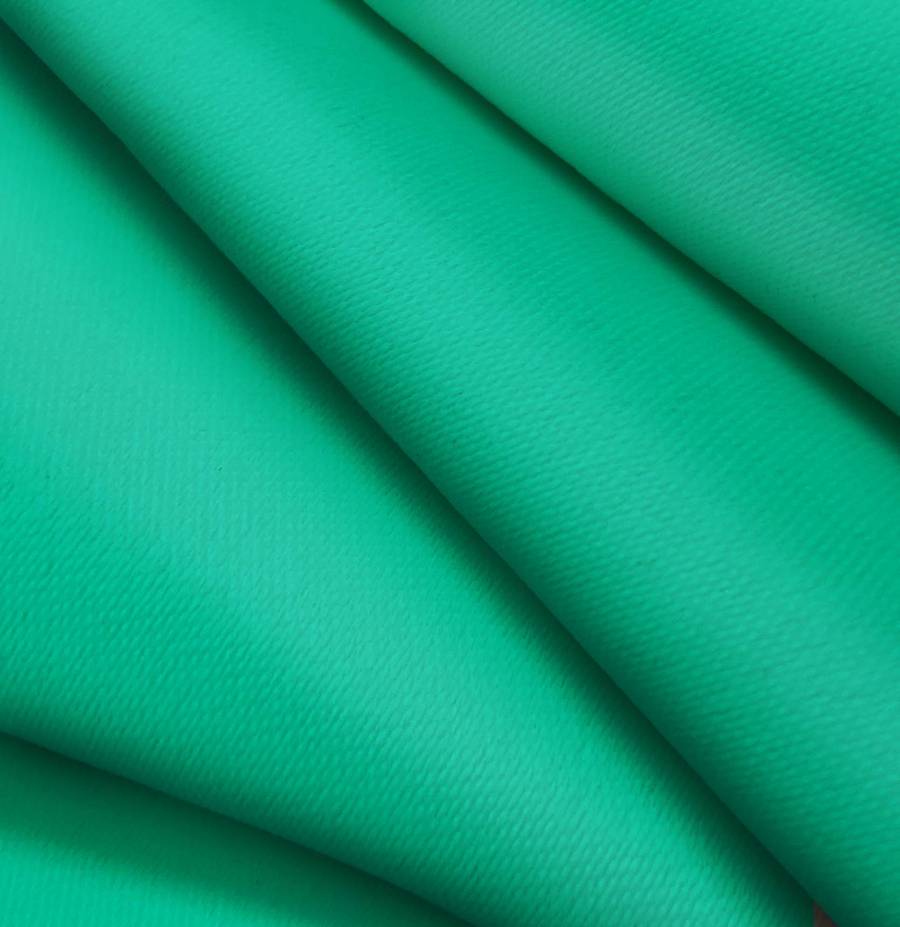O tecido base é Lona Blackout na cor Branca. A cor impressa é Azul Esmeralda, com CMYK 81 13 65 1. Combina com tons neutros como branco, cinza e preto. O tecido é impresso em um único lado por impressão digital têxtil.