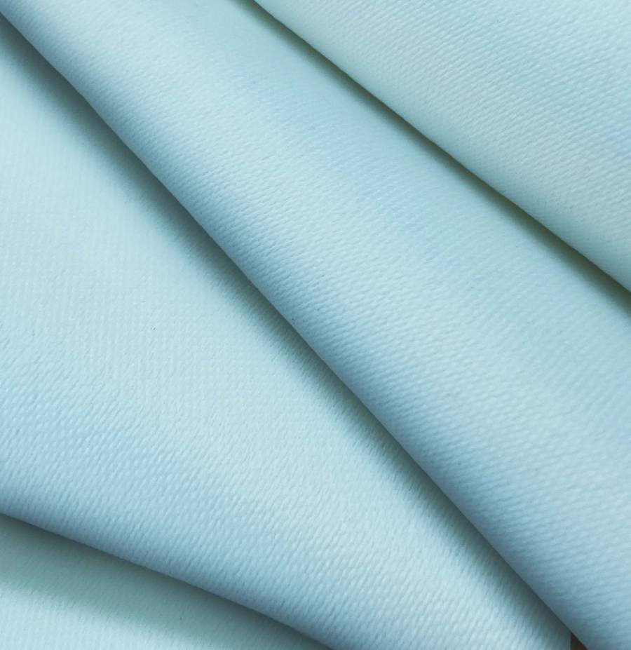 O tecido base, Lona Oscurante - White Out, é um tecido técnico de poliéster com uma gramagem de 218 gr/m2 e uma largura de 160 cm. A sua cor lisa impressa é Azul Ocular, com um CMYK de 46 9 11 0. Esta cor caracteriza-se por ser um azul intenso com nuances de turquesa, que combina especialmente bem com tons neutros como branco, cinzento e bege.