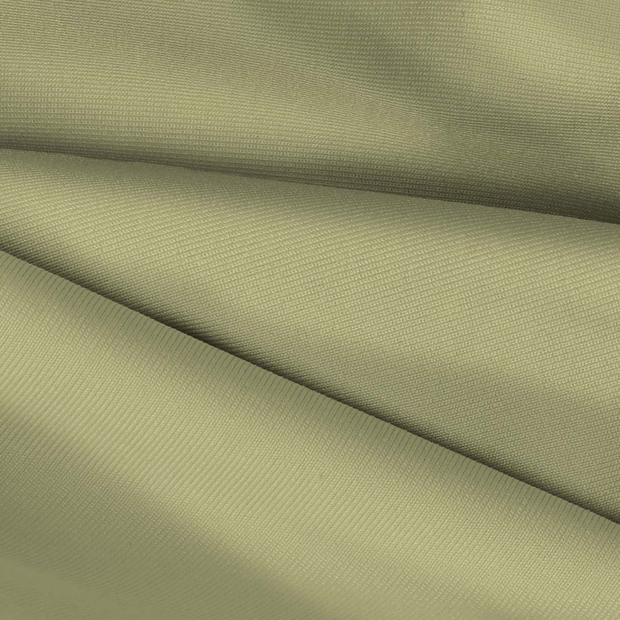 O tecido base é uma Lycra de Poliéster Nairobi de 270 gr/m2, com uma composição de 82% de poliéster e 18% de elastano, e uma largura de 150 cm. A cor lisa estampada é um verde-oliva com um CMYK de 31 18 56 3, que simboliza a vitalidade e frescor da natureza. O verde-oliva combina particularmente bem com tons terra, marrons e dourados, o que o torna perfeito para peças de moda e esportivas de tons naturais.