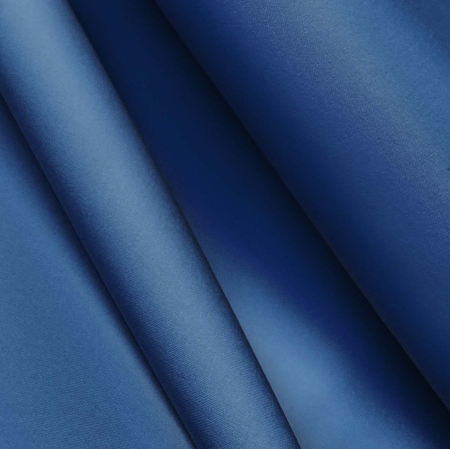 O tecido base é o Poliéster Reciclado Esportivo - Basic, composto por 93% de poliéster e 7% de elastômero, com uma gramatura de 145 gr/m2 e uma largura de 145 cm. A cor lisa impressa é Azul Lápis-lazúli, que é composta por uma combinação de 100% de tinta Ciano, 79% de tinta Magenta, 29% de tinta Amarelo e 13% de tinta Preto, com um CMYK de 100 79 29 13. Esta cor secundária caracteriza-se por ser profunda, intensa e chamativa, e combina em particular com cores claras e neutras, como o branco, cinza e bege. É importante destacar que o tecido é impresso com a cor lisa em uma única face por impressão digital têxtil, e não é um tecido tingido, mas sim impresso de forma digital.
