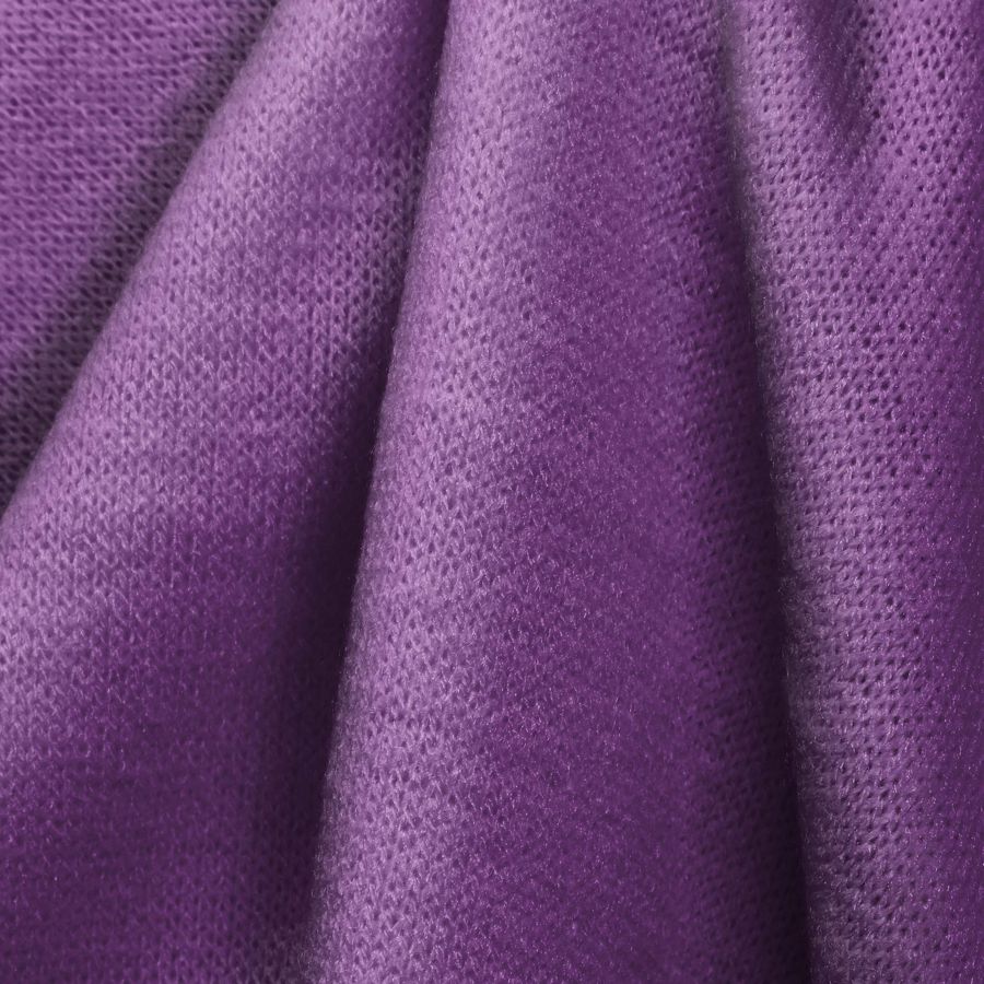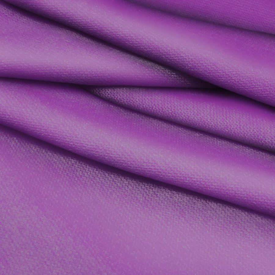 O tecido base é o Ponto Jersey de Toque Algodão - Atenas, com uma composição de 81% poliéster, 15% acrílico e 4% elastano, uma densidade de 239 gr/m2 e uma largura de 150 cm. A cor lisa estampada é um vibrante tom roxo iridescente, com uma tinta Ciano de 57, Magenta de 80, Amarelo de 5 e Preto de 0, numa combinação CMYK de 57 80 5 0. Esta cor complementa-se com tons verdes e azuis.