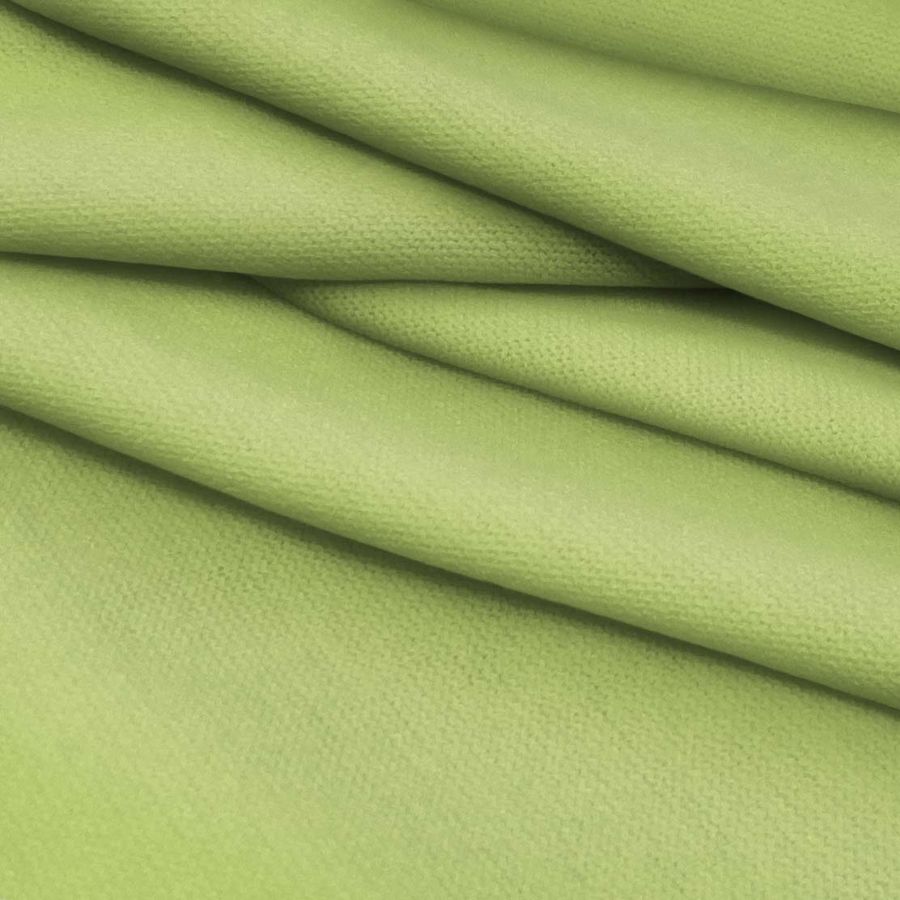 O tecido base é o Punto Jersey de Toque Algodão - Atenas, e a cor lisa impressa é Verde pistache com um CMYK de 39 5 72 0. Esta cor simboliza a juventude, a vitalidade e o frescor, e tecnicamente pode ser definida como um verde limão com um tom amarelo. Combina particularmente bem com tons mais escuros de verde e azul, bem como com neutros como o branco ou o cinza.