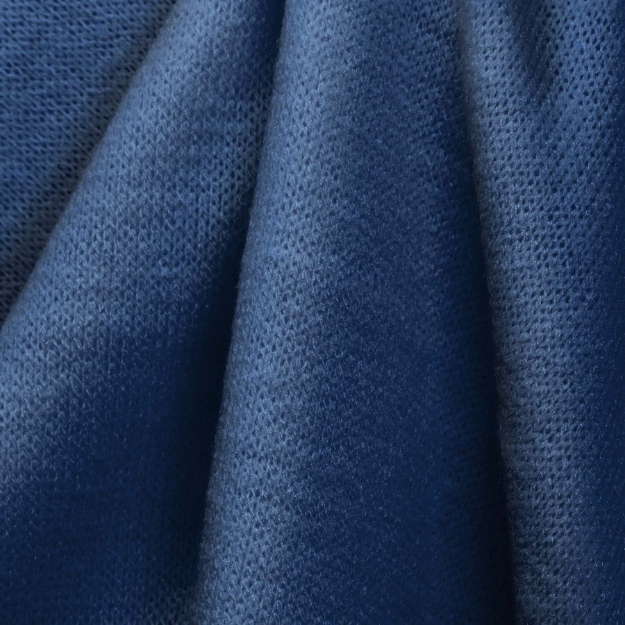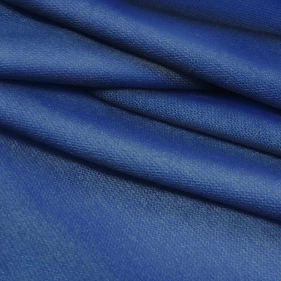 O tecido base deste tecido é o Punto Jersey de Toque de Algodão - Atenas, com uma composição de 81% poliéster, 15% acrílico e 4% elastano. Seu peso é de 239 gr/m2 e tem uma largura de 150 cm. Quanto à cor, trata-se de um azul intenso e vibrante, semelhante ao lápis-lazúli, com um CMYK de 100 80 29 13 e uma mistura de tinta ciano, magenta, amarela e preta. Esta cor secundária é muito versátil e combina especialmente bem com tons mais claros como o branco, o creme ou o bege, mas também com cores mais escuras como o preto, o cinza ou o marrom.
