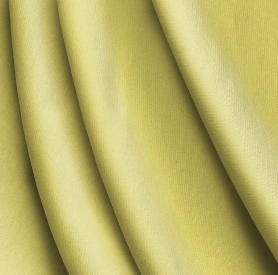 O tecido base é o Punto Roma Elástico - Lyon, composto maioritariamente por poliéster e elastano, com uma gramagem de 282 gr/m2 e uma largura de 150 cm. A cor lisa impressa é um tom amarelo milho intenso, com uma combinação de tintas CYMK de 4 3 66 0. Esta cor secundária é descrita como alegre, energizante e vibrante, própria do verão e do sol. Combina de forma excelente com outras cores quentes como os vermelhos, laranjas e fúcsias, assim como com tons mais neutros como cinzentos ou brancos. O tecido é impresso com a cor lisa numa só face através de tecnologia de impressão digital têxtil, o que permite uma maior precisão e qualidade na reprodução da cor.