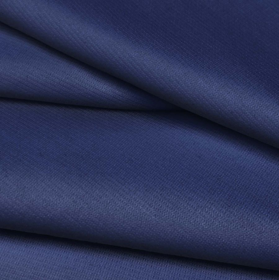 O tecido base é o Punto Roma Elástico - Lyon, um tecido de malha composto por 97% poliéster e 3% elastano, com gramatura de 282 gr/m2 e largura de 150 cm. A cor lisa estampada neste tecido é Azul Noite, com uma combinação de tinta ciano a 100%, magenta a 90%, amarelo a 33% e preto a 21%, o que se traduz num CMYK de 100-90-33-21. Esta cor secundária caracteriza-se pela sua elegância e sofisticação, e combina especialmente bem com tons claros como o branco ou o bege, assim como com outros tons escuros como o cinzento ou o preto.
