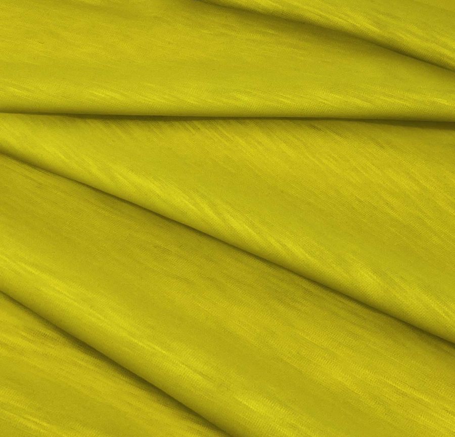 O tecido base desta peça é o Jersey Sarjado - Dubai, um tecido de malha 100% poliéster com peso de 135 gr/m2 e largura de 160 cm. A cor lisa estampada é um Verde Oliva com uma mistura CMYK de 26 22 98 5, que lhe confere um aspecto subtil e atraente.