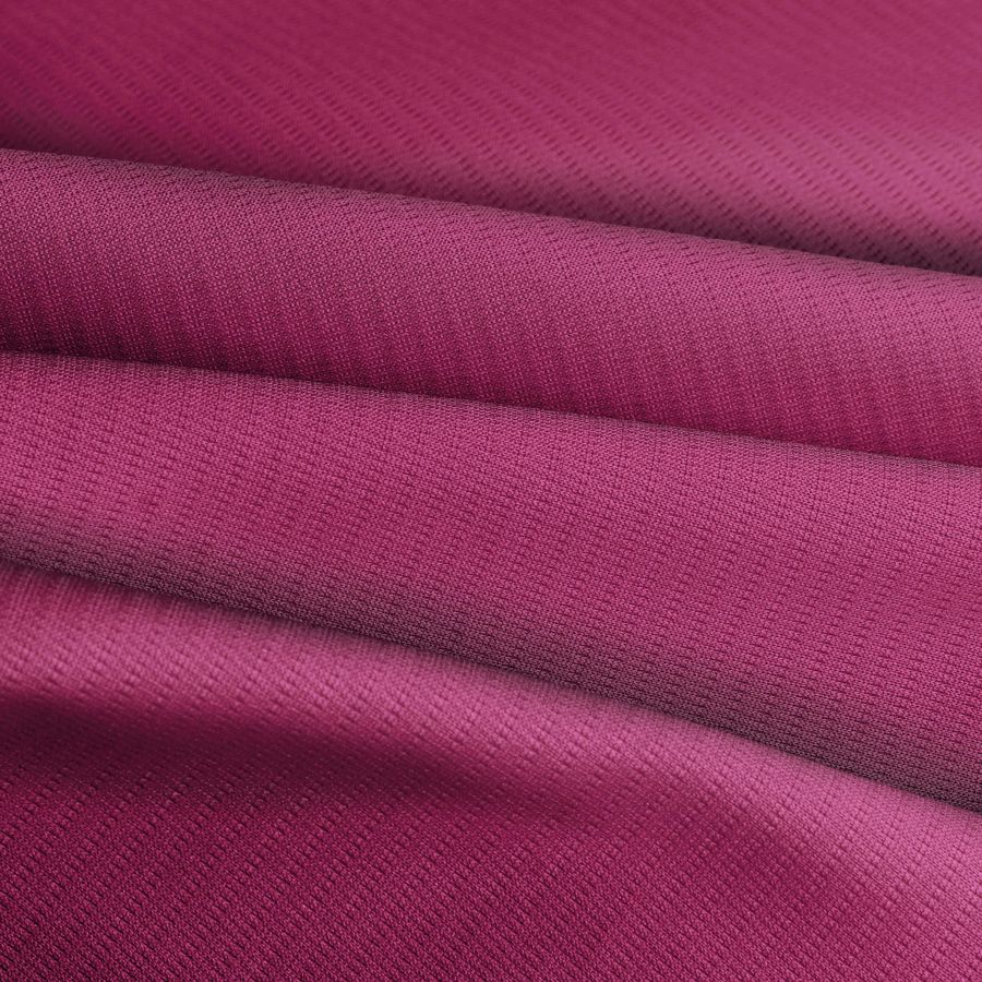 O tecido base do nosso produto é o Tecido Técnico Respirável - Fresh, um tecido técnico 100% poliéster, com uma gramatura de 135 gr/m2 e uma largura de 150 cm. O tecido caracteriza-se pelo seu acabamento respirável e pela sua textura elástica ao toque. A cor lisa estampada deste tecido é uma combinação de vermelho e rosa queimado, com um CMYK de 30 95 33 24, o que lhe confere uma tonalidade quente e vibrante. Esta cor secundária combina especialmente bem com tons neutros, como o branco e o preto, assim como com tonalidades naturais, como o verde e o marrom.