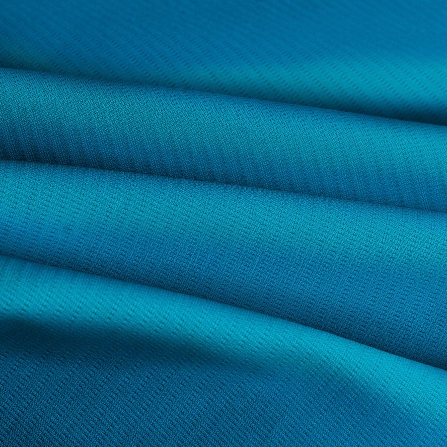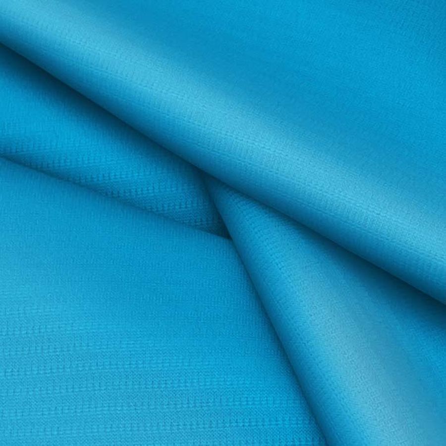 Esta tela base é o Tecido Técnico Respirável - Fresh, com uma composição de 100% poliéster, uma gramatura de 135 gr/m2 e uma largura de 150 cm. A cor lisa impressa é um azul borboleta, com um CMYK de 78 28 0 0 e combina perfeitamente com tons de verde e roxo. A tela é impressa com a cor lisa em apenas uma face por meio de impressão digital têxtil. As características gerais da tela incluem um acabamento respirável, textura elástica e um toque suave. Esta tela é ideal para scrunchies, elásticos de cabelo e camisetas esportivas para mulheres, homens e crianças durante qualquer época do ano. É importante notar que a peça não permite lavagem a seco e deve ser passada a ferro em temperatura fria. Finalmente, este tecido é fabricado por meio da tecnologia de impressão por sublimação de poliéster.