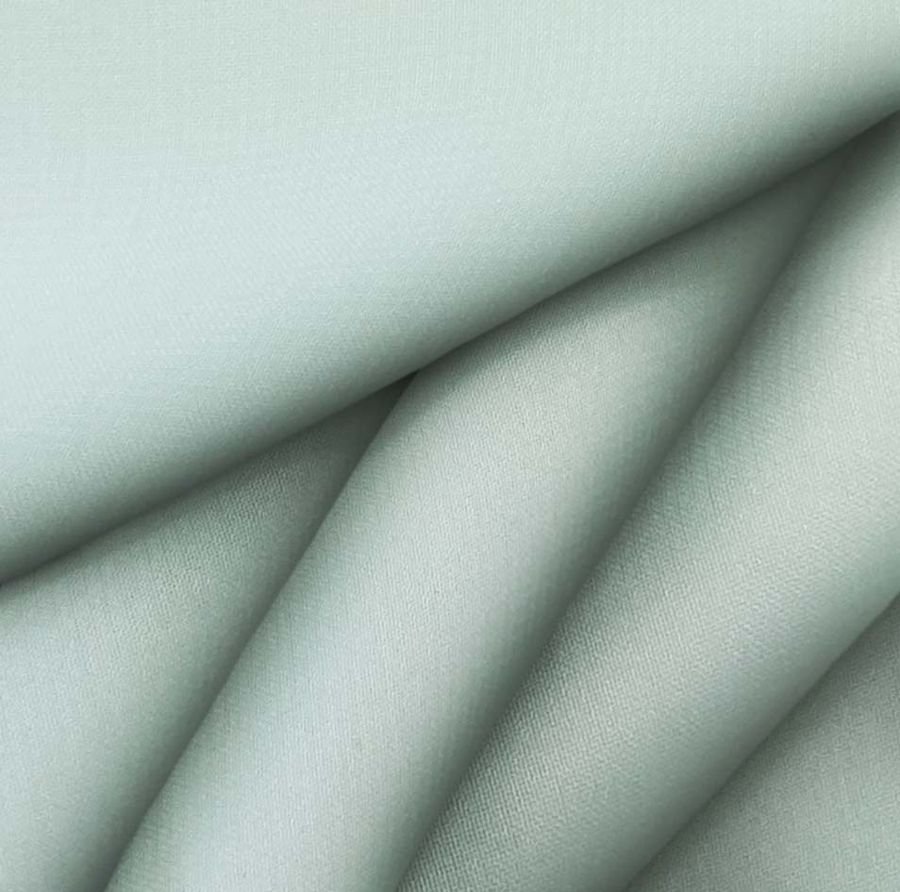 O tecido base, Gaze Transparente – Salamanca, é uma gaze 100% poliéster, com uma gramagem leve de 28 gr/m2 e uma largura de 150 cm. A cor lisa impressa é um verde escuro chamado DarkSeaGreen, com uma concentração de tinta ciano de 33, magenta de 5, amarelo de 26 e preto de 0, resultando num tom suave e natural. A combinação de ciano e amarelo é responsável pela cor esverdeada, enquanto a pequena quantidade de magenta adiciona sutileza. Este tom combina perfeitamente com outros verdes, castanhos e azuis.