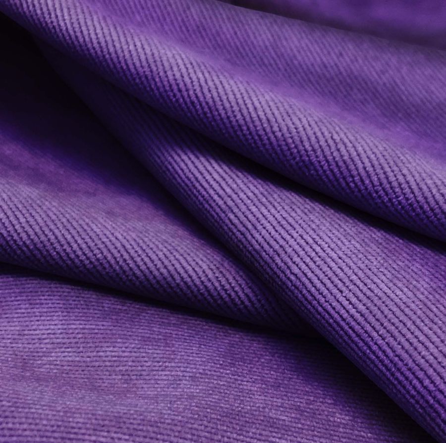 O tecido de base em questão é a Pana Aterciopelada - Dublin, composta por 85% poliéster, 12% poliamida e 3% elastano, com gramatura de 280 gr/m2 e largura de 150 cm. A cor lisa estampada é roxo íris, com uma combinação de tintas Ciano, Magenta, Amarelo e Preto de 84, 95, 10 e 2, respectivamente. Esta cor apresenta-se brilhante e suave ao toque, e combina perfeitamente com tons lilás, rosa e cinza. É importante destacar que o tecido é estampado de um só lado por impressão digital têxtil.