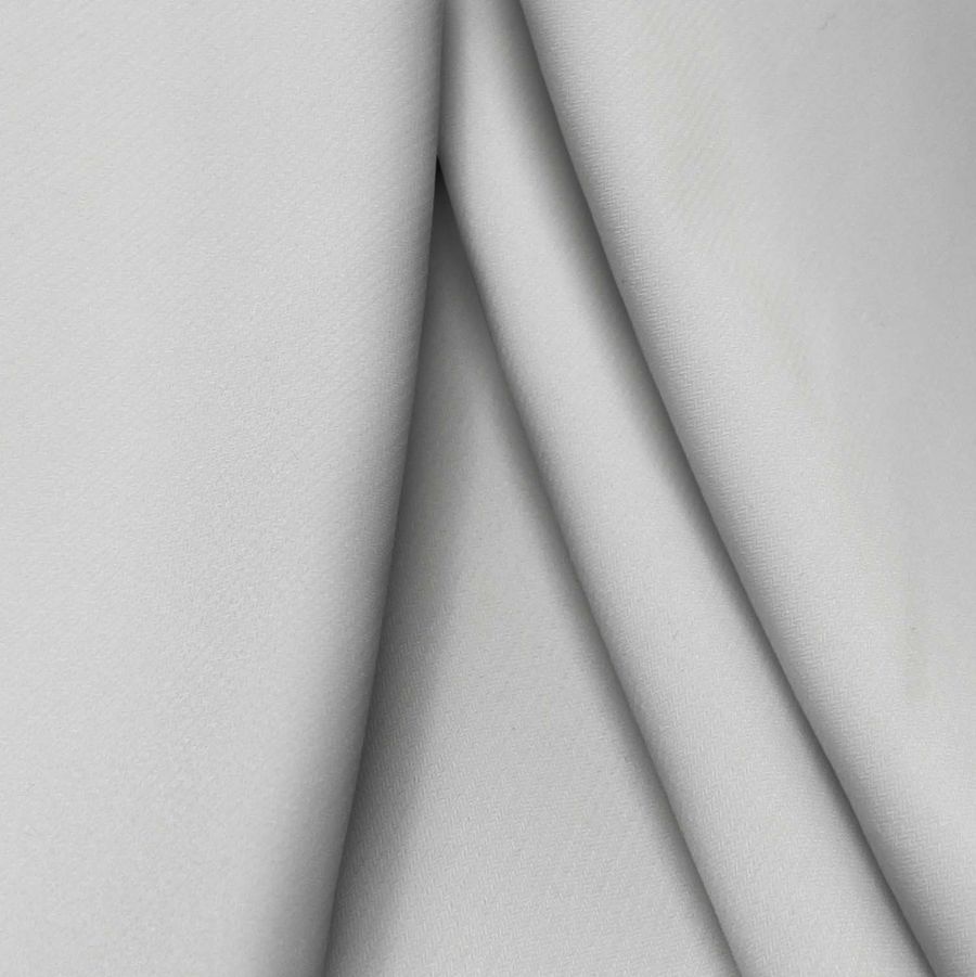 O tecido base é o Ponto Sintético com Spandex - Support, composto por 95% poliéster e 5% elastano, com gramatura de 237 gr/m2 e largura de 152 cm. A cor lisa impressa é Cinza Prata, com uma combinação de tintas de 25 em Ciano, 16 em Magenta, 18 em Amarelo e 1 em Preto, resultando em um CMYK de 25 16 18 1. Esta cor secundária, além de elegante e sofisticada, é conhecida por ser calmante e relaxante para o olho humano. Combina especialmente bem com tonalidades frias como azul, verde e violeta, enquanto tons mais escuros como preto e marrom realçam sua elegância. É importante destacar que o tecido é impresso com a cor lisa em uma única face por impressão digital têxtil, o que significa que o design é nítido e duradouro.