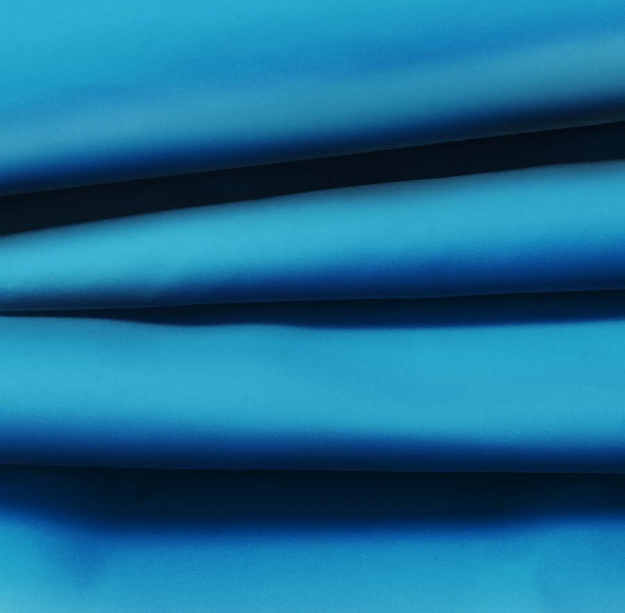 O tecido base é o Tecido Fino Repelente à Água - Storm, um tecido técnico 100% poliéster com uma gramagem de 70 gr/m2 e uma largura de 145 cm. A cor lisa estampada é um azul intenso, com uma combinação de tinta CMYK de Ciano 87, Magenta 46, Amarelo 10 e Preto 1, que reflete uma imagem de hera azul. Esta cor mistura tonalidades de azul escuro e verde, evocando a natureza e o frescor. Combina muito bem com cores neutras como branco, preto e cinza, e também com outros tons de verde e azul.