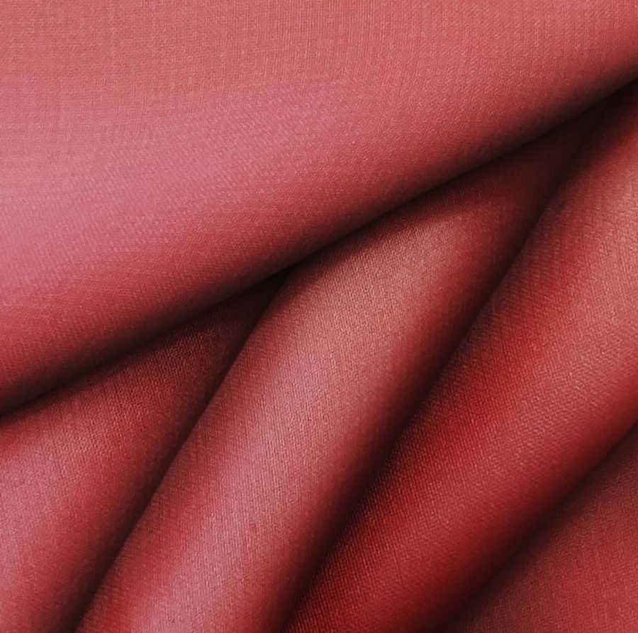 O tecido base deste tecido é a Gasa Transparente - Salamanca, tipo gaze e 100% poliéster, com uma gramagem de 28 gr/m2 e uma largura de 150 cm. A cor lisa impressa neste tecido é vermelho auburn, com um CMYK de 24 93 82 19, o que lhe confere um tom quente e profundo. A cor combina especialmente bem com tons quentes como o castanho e o laranja, bem como com tons neutros como o branco e o cinzento.