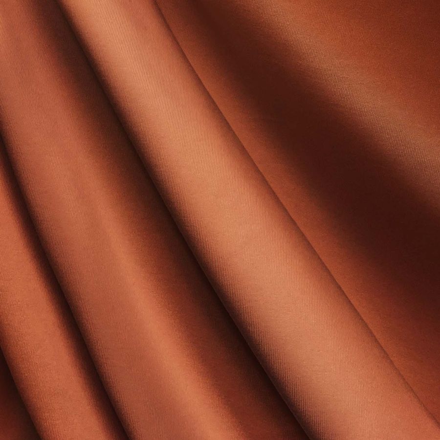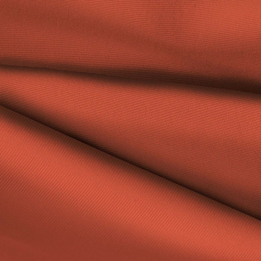 O tecido base é uma Lycra de Poliéster Nairobi de 270 gr/m2, composta por 82% poliéster e 18% elastano. A cor lisa estampada é um vibrante laranja Golden Gate, representado por um CMYK de 19 75 84 8. Esta cor combina perfeitamente com tons marrons quentes e verde-oliva suave. Além disso, o tecido é estampado em uma única face por impressão digital têxtil, com um acabamento muito macio e resistente.