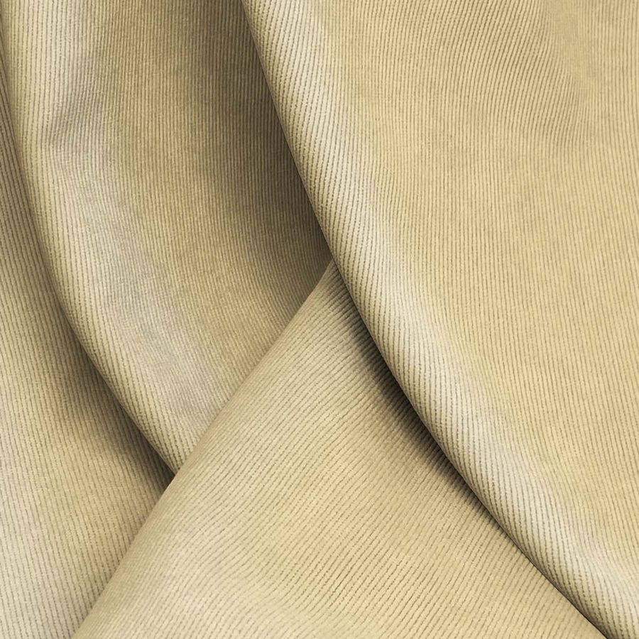 O tecido base é Veludo Cotelê - Dublin, composto por 85% poliéster, 12% poliamida e 3% elastano, com uma gramagem de 280 gr/m2 e uma largura de 150 cm. A sua cor lisa impressa é amarelo areia, indicada por um CMYK de 14 22 51 2. Esta cor combina harmoniosamente com tonalidades de branco e bege.