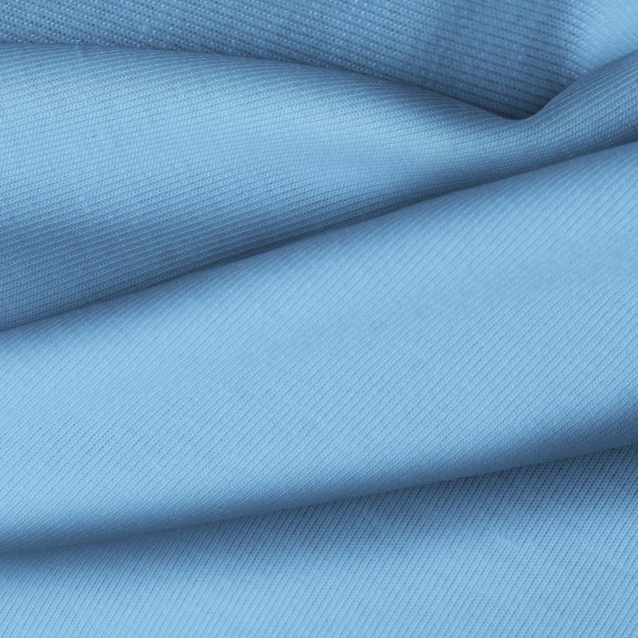 O tecido base deste produto é Malha Jersey - Vanity na cor Azul Aço com CMYK de 64 32 4 0. Esta cor simboliza serenidade e força, perfeita para peças versáteis e modernas. Combina especialmente bem com tons neutros como branco, preto e cinza.