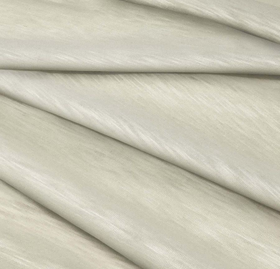 O tecido é impresso com a cor lisa numa única face por impressão digital têxtil. O tecido base apresenta características como textura, toque liso, textura visual translúcida e uma textura visual jaspeada muito sutil. Além disso, é elástico e confortável de usar.