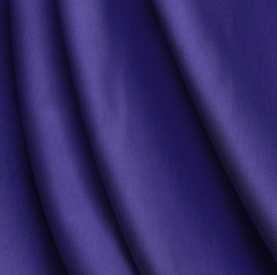O tecido base deste tecido é o Punto Roma Elástico - Lyon, um tecido de malha elástica composto por 97% poliéster e 3% elastano. Tem uma gramagem de 282 gr/m2 e uma largura de 150 cm. O tecido é suave ao toque e está estampado numa cor lisa que combina roxo e azul púrpura. O CMYK da cor é 97 97 5 1, o que indica uma predominância das cores magenta e ciano.