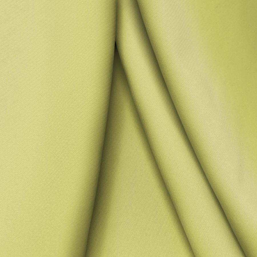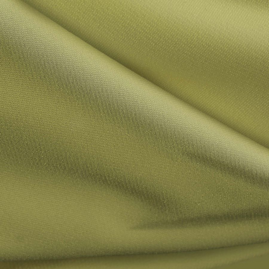 O tecido base é o Ponto Sintético com Spandex - Support, com uma composição de 95% poliéster e 5% elastano, uma gramagem de 237 gr/m2, uma largura de 152 cm e uma textura suave, opaca e elástica. A cor lisa estampada é amarelo areia, com uma combinação de tintas Ciano 24, Magenta 10, Amarelo 68 e Preto 0, num CMYK de 24 10 68 0. Esta cor complementa perfeitamente tonalidades verdes, marrons e azuis. O tecido é estampado com a cor lisa numa única face por impressão digital têxtil, sem tingimento, o que garante uma alta durabilidade da cor e a sua resistência à lavagem.