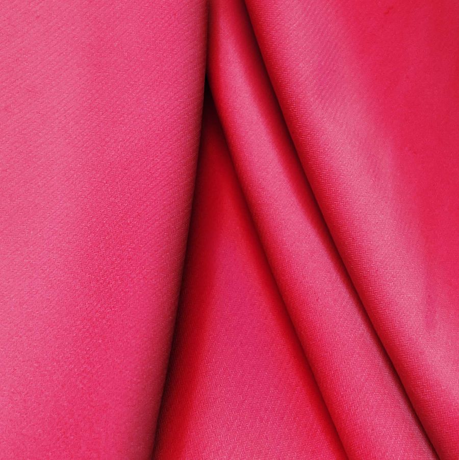 O tecido base é o Punto Sintético com Spandex - Support, de 95% poliéster e 5% elastano, com gramatura de 237 gr/m2 e largura de 152 cm. A cor lisa estampada a que nos referimos é um Vermelho Framboesa, com CMYK de 0 96 53 0, o que a torna intensa e vibrante, ideal para peças de impacto. Esta cor combina perfeitamente com tons roxos ou azulados, o que permite uma grande variedade de opções de design.