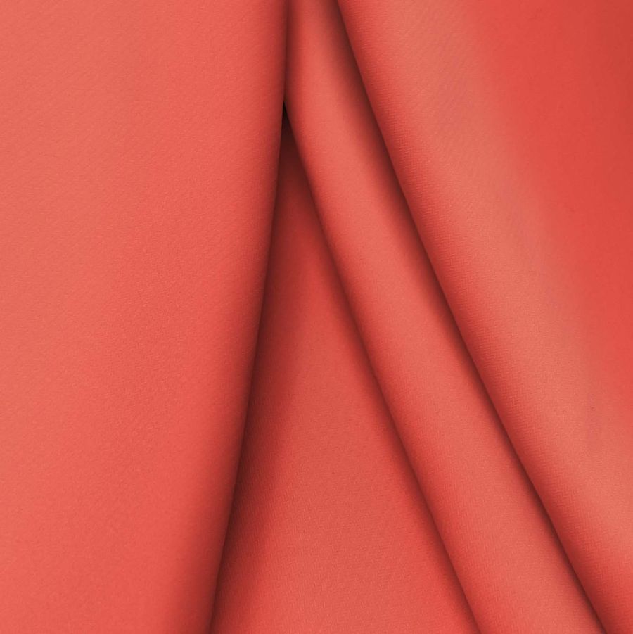 O tecido base é malha sintética com Spandex - Support, composta por 95% poliéster e 5% elastano, com gramatura de 237 gr/m2 e largura de 152cm. A cor lisa impressa é Vermelho alaranjado com um CMYK de 0 79 64 0. Este tom intenso e vibrante evoca paixão e vitalidade, e combina especialmente bem com tons amarelos e rosados.
