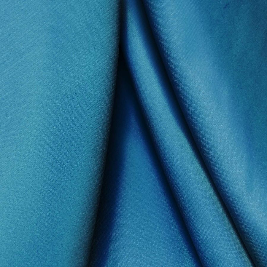 O tecido base é Malha Sintética com Spandex - Support, composta por 95% poliéster e 5% elastano, o que a torna resistente e elástica. Possui uma gramatura de 237 gr/m2 e uma largura de 152 cm. A cor lisa estampada é Azul Lápis-lazúli, cujo CMYK é 93 56 28 13. Esta cor é intensa e escura, conferindo uma nota de elegância e sofisticação. Combina com tons terra e ocres, bem como com dourados e prateados. O tecido é estampado com esta cor lisa em uma única face por impressão digital têxtil, o que o torna mais durável e com um acabamento perfeito.
