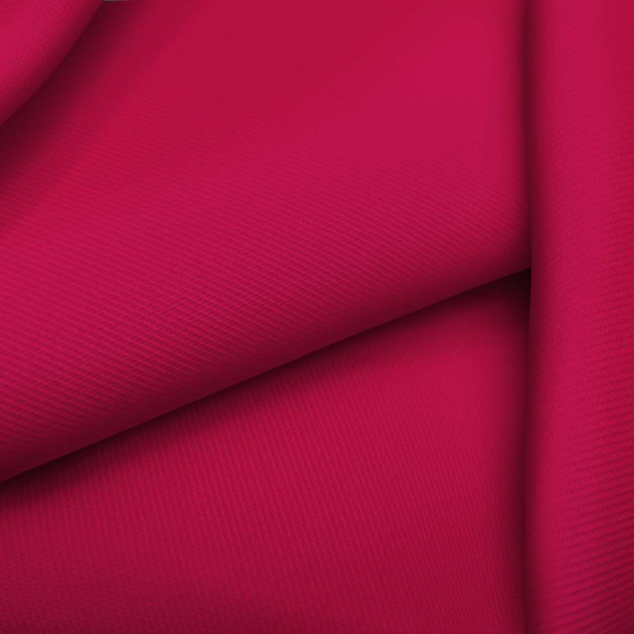 O tecido base desta peça é Sarja - Prada, uma sarja composta por 96% poliéster e 4% elastano com uma gramagem de 220 gr/m2 e uma largura de 150 cm. Quanto à sua cor lisa impressa, trata-se de um vermelho cardinal com um CMYK de 18 100 60 9. Esta cor secundária transmite paixão e energia, e combina bem com tons neutros como o branco e o preto, e tons terra como o marrom e o bege.