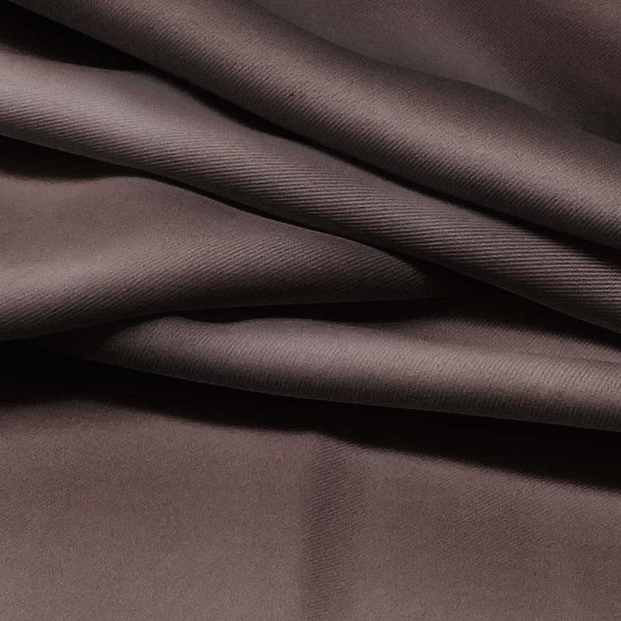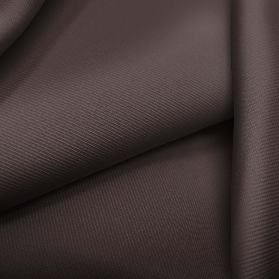 O tecido base deste produto é a sarja Prada, composta por 96% poliéster e 4% elastano, com gramatura de 220 gr/m2 e largura de 150 cm. A cor lisa estampada é um marrom intenso, semelhante ao wengué, com um CMYK de 56 63 57 70.