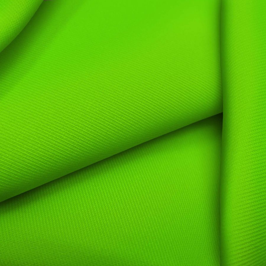 O tecido base desta descrição é a Sarja - Prada, composto por 96% de poliéster e 4% de elastano. Sua gramatura é de 220 gr/m2 e sua largura é de 150cm. A cor do tecido é um verde intenso, especificamente um verde grama que possui uma composição de 61% de tinta ciano, 0% de tinta magenta, 100% de tinta amarela e 0% de tinta preta, o que, em termos de CMYK, se traduz em um valor de 61, 0, 100, 0.