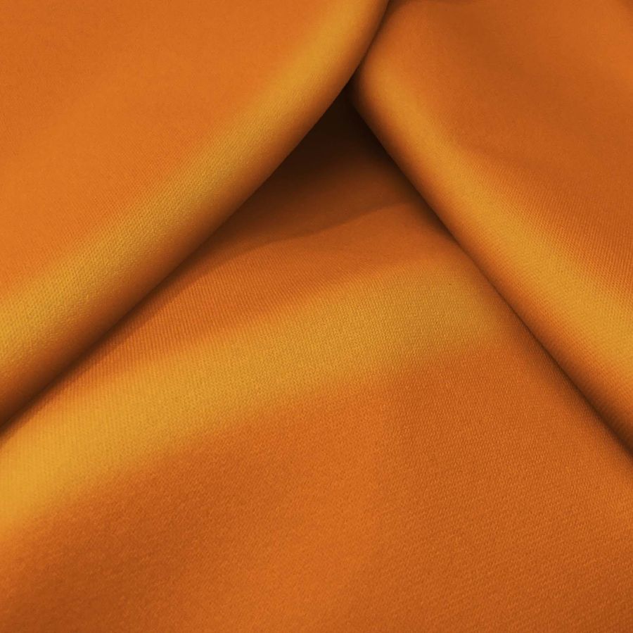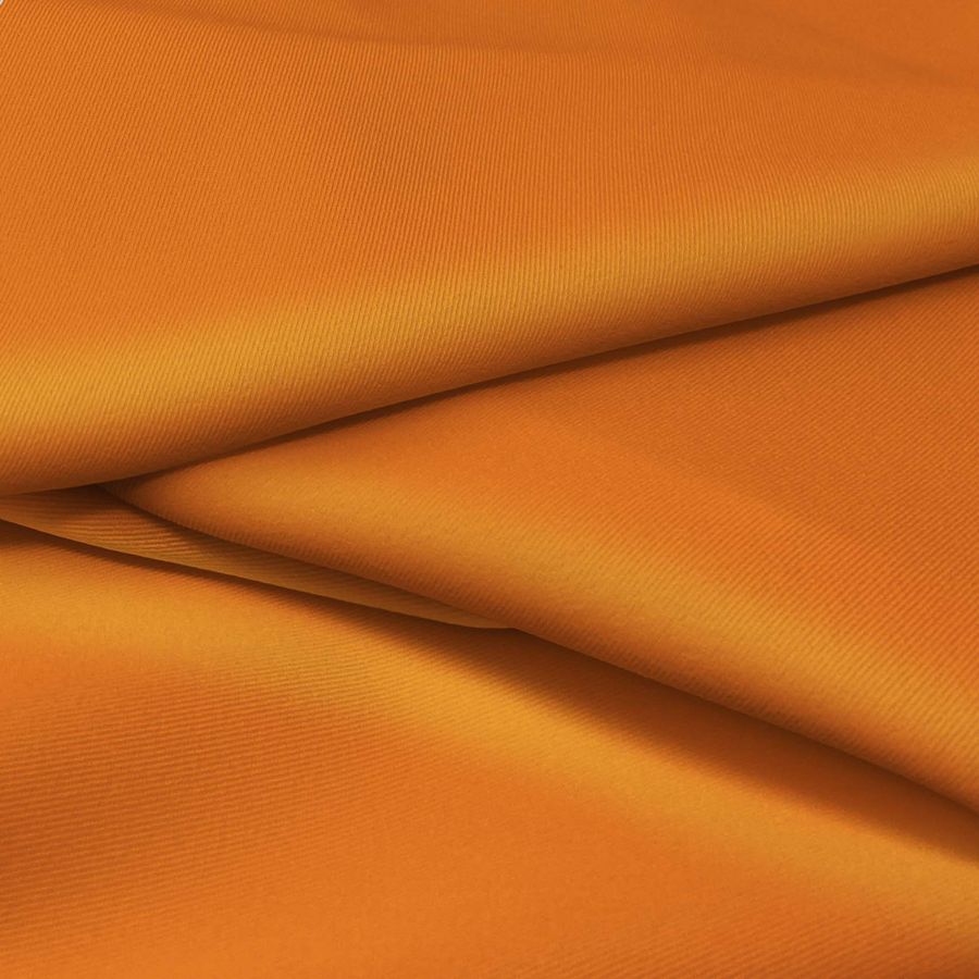 O tecido base, Sarja Bielástica - Lisboa, contém 97% poliéster e 3% elastano, com um peso de 209 gr/m2 e uma largura de 150 cm. A cor sólida impressa, Laranja Butano, tem um perfil CMYK de 2 69 93 0 e combina excecionalmente bem com vermelho, amarelo e castanho. O tecido é impresso com uma cor sólida numa única face por impressão digital têxtil. As características gerais mostram uma textura áspera, elástica e suave ao toque. As aplicações e utilizações do tecido incluem calças, saias, jeans e acessórios de moda, bem como almofadas, panos de cozinha e presentes para o lar. Os cuidados necessários para a manutenção do tecido são evitar o uso de lixívia, lavar a uma temperatura máxima de 30ºC, limpeza a seco (exceto com tricloroetileno), passar a ferro a temperatura fria e sem máquina de secar. A tecnologia de impressão utilizada na fabricação do tecido é a sublimação de poliéster, conseguindo uma impressão duradoura e de alta qualidade no tecido.