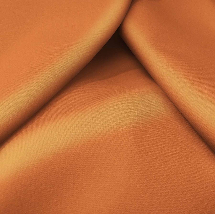 O tecido base Sarja Bielástica - Lisboa, composto por 97% poliéster e 3% elastano, tem uma gramatura de 209 gr/m2 e uma largura de 150 cm. A cor lisa estampada é Laranja de Portland, com um CMYK de 0 65 78 0. Este laranja é intenso e luminoso, adicionando um toque de energia e vitalidade a qualquer peça de roupa ou acessório feito com este tecido. Combina especialmente bem com outros tons quentes como amarelos, vermelhos e bordôs. É importante notar que o tecido é estampado com a cor lisa numa só face por impressão digital têxtil.