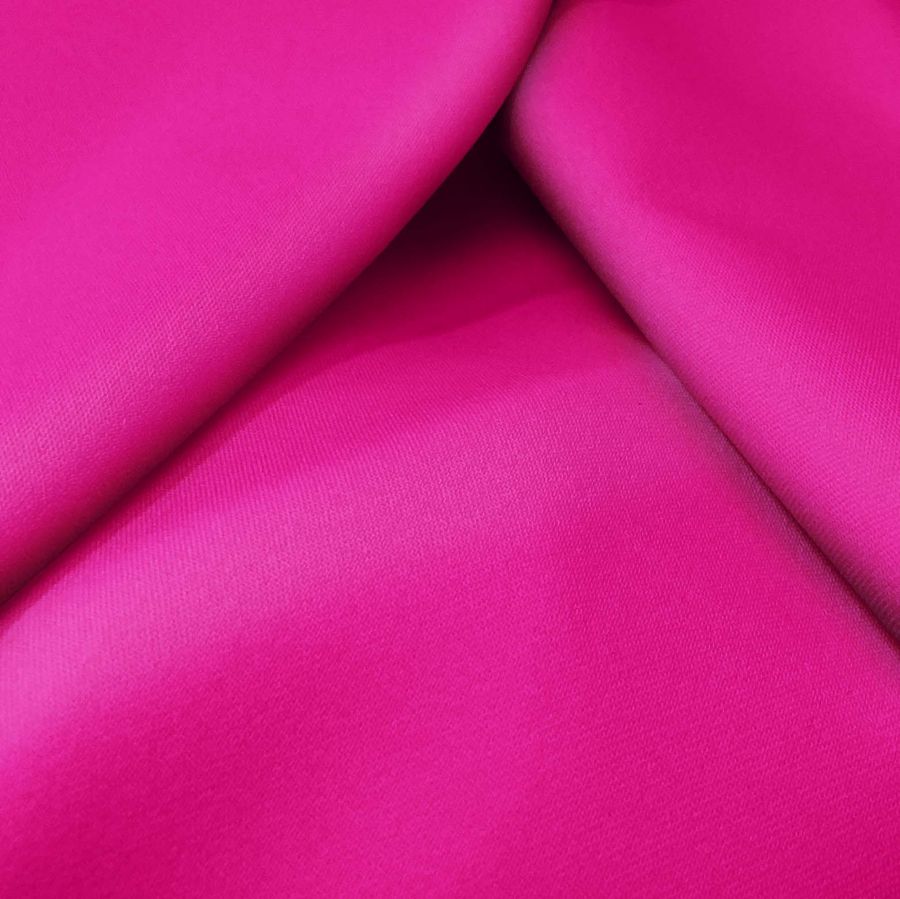 O tecido base Sarja Bielástica - Lisboa é um tecido tipo sarja com uma composição de 97% POLIÉSTER e 3% ELASTANO, o que lhe confere uma textura áspera, elástica e suave ao toque. A sua gramagem de 209 gr/m2 e uma largura de 150 cm tornam-no adequado para múltiplos usos, tanto na moda como na decoração têxtil. A cor lisa impressa neste tecido é uma combinação de vermelho e roxo, com tinta Ciano de 2, Magenta de 98, Amarelo de 10 e Preto de 0, e um CMYK de 2 98 10 0.