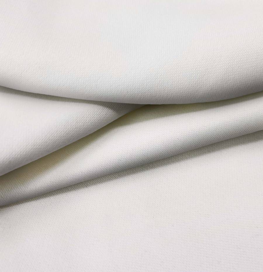 O tecido de lona blackout White Out é um tecido de lona com uma composição 100% poliéster, com uma gramatura de 218 gr/m2 e uma largura de 160 cm. Sua textura é lisa e suave, com um toque rígido que lhe confere uma grande opacidade. Este tecido está disponível em sua cor natural, um elegante branco, mas também pode ser impresso com mais de 2.000 cores lisas ou com qualquer design ou estampa que o cliente desejar, o que o torna uma opção versátil e personalizável.